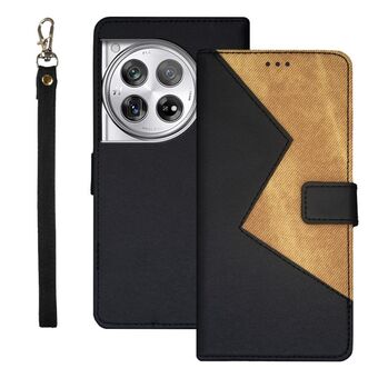 For OnePlus 12 idewei Two-color Splicing Leather Phone Case(Black) (idewei)