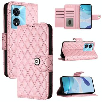Για OnePlus Nord N30 SE Rhombic υφή Flip υπόθεση τηλεφώνου δέρμα με κορδόνι (ροζ)