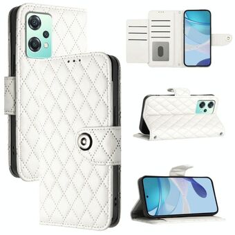 Για το OnePlus Nord 2 Lite Rhombic Texture Flip δερμάτινη θήκη τηλεφώνου με κορδόνι (λευκό)