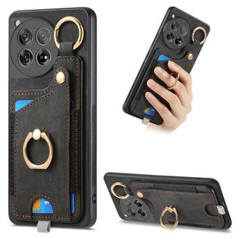 Για OnePlus 12 5G Ρετρό δέρμα-feel Ring Card τσάντα υπόθεση τηλεφώνου με Hang Loop (Μαύρο)