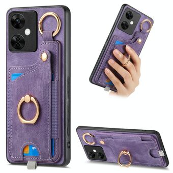 Για OnePlus Nord CE3 Ρετρό δέρμα αίσθηση δαχτυλίδι κάρτα τσάντα υπόθεση τηλεφώνου με Hang Loop (μωβ)