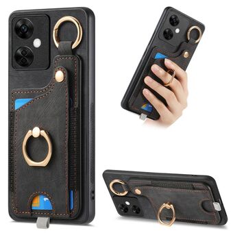 Για OnePlus Nord CE3 Ρετρό δέρμα αίσθηση δαχτυλίδι κάρτα τσάντα υπόθεση τηλεφώνου με Hang Loop (Μαύρο)
