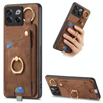 Για OnePlus 10T Ρετρό δέρμα αίσθηση δαχτυλίδι τσάντα κάρτα υπόθεση τηλεφώνου με Hang Loop (καφέ)