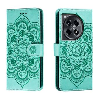 Για OnePlus Ace 3 Sun Mandala ανάγλυφο μοτίβο τηλέφωνο δερμάτινη θήκη (πράσινο)