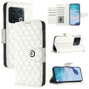 Για το OnePlus 10 Pro Rhombic Texture Flip δερμάτινη θήκη τηλεφώνου με κορδόνι (λευκό)