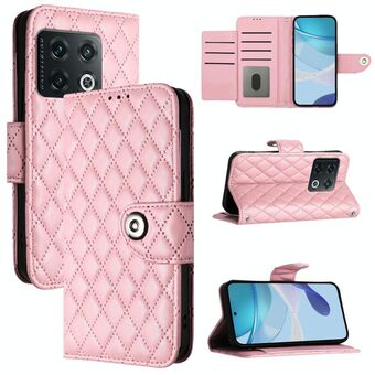 Για OnePlus 10R / Ace Rhombic υφή Flip υπόθεση τηλεφώνου δέρμα με κορδόνι (ροζ)