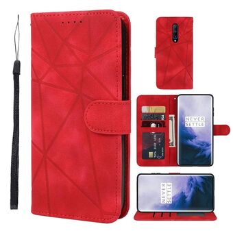 Για OnePlus 7T Skin Feel γεωμετρικές γραμμές δερμάτινη θήκη τηλεφώνου (κόκκινο)