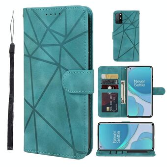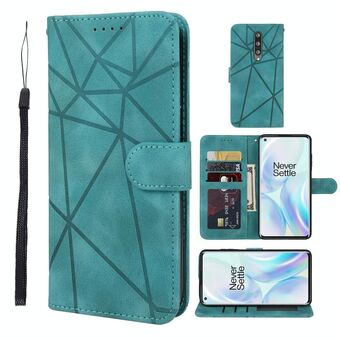 Για OnePlus 8 δέρμα αίσθηση γεωμετρικές γραμμές δέρμα τηλέφωνο υπόθεση (πράσινο)