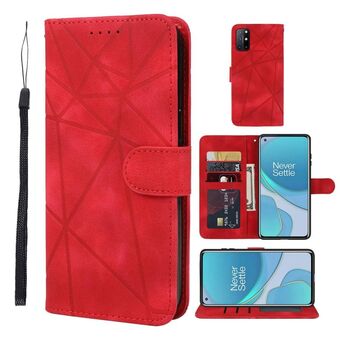 Για OnePlus 8T Skin Feel γεωμετρικές γραμμές δερμάτινη θήκη τηλεφώνου (κόκκινο)
