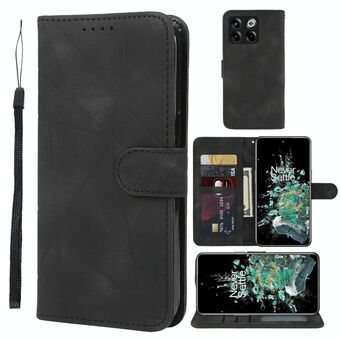 Για OnePlus 10 Pro 5G Skin Feel γεωμετρικές γραμμές δερμάτινη θήκη τηλεφώνου (μαύρο)