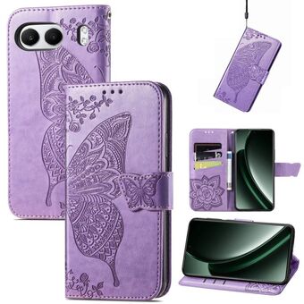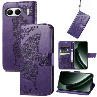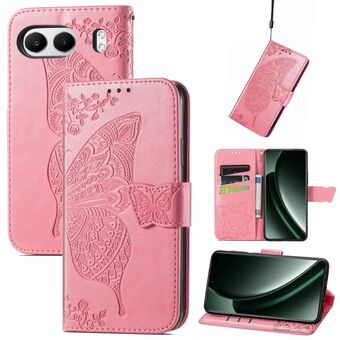 Θήκη τηλεφώνου από δέρμα με ανάγλυφο σχέδιο πεταλούδας και λουλουδιών για OnePlus Nord 4 (Μπλε)