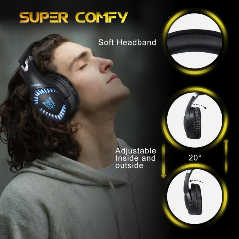 5. Πρώτο gaming headset ONIKUMA που λάμπει τόσο στο μπροστινό όσο και στο πλάι των ακουστικών, ο υπέροχος φωτισμός δημιουργεί μια υπέροχη ατμόσφαιρα παιχνιδιού. Διαφορετικό από τα κοινά headsets στην αγορά, αυτό το headset είναι πιο μαχητικό οπτικά, πηγαίνετε για τη νίκη με αυτό.