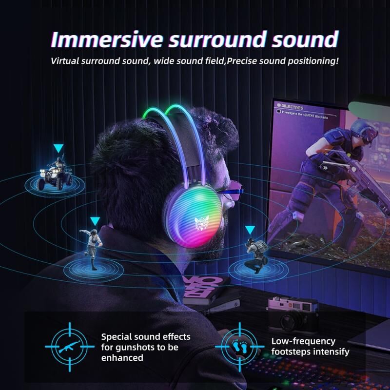 1. Surround Sound: 50mm driver unit brings you a vivid sound field, clear and shocking sound, and is suitable for all kinds of games.