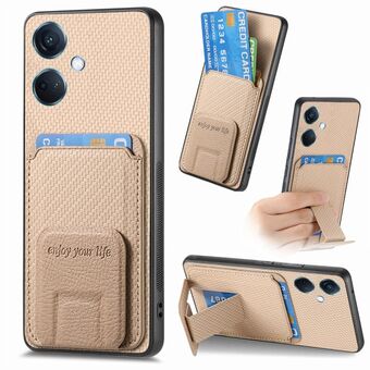 For OPPO A58 4G Carbon Fiber Card Bag Fold Stand Phone Case(Khaki)