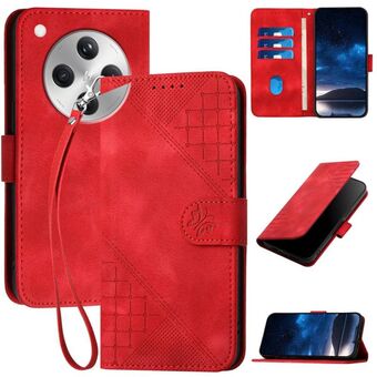 For OPPO Find X8 Grid Butterfly Embossed Pattern Leather Phone Case with Lanyard(Red)