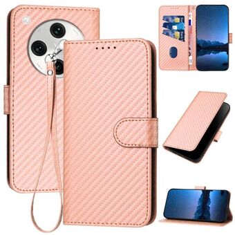 For OPPO Find X8 Pro YX0070 Carbon Fiber Buckle Leather Phone Case with Lanyard(Pink)