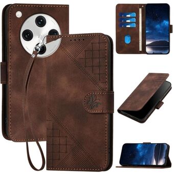 For OPPO Find X8 Pro Grid Butterfly Embossed Pattern Leather Phone Case with Lanyard(Coffee)