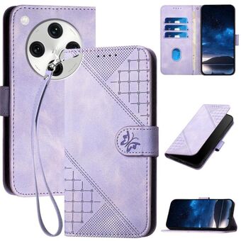 For OPPO Find X8 Pro Grid Butterfly Embossed Pattern Leather Phone Case with Lanyard(Light Purple)
