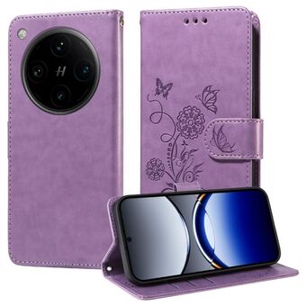 For OPPO Find X8 Pro Embossed Butterfly Flowers Leather Phone Case(Purple)