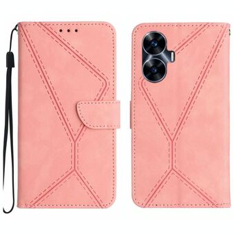 Για Realme C55 ραφή ανάγλυφη δερμάτινη θήκη τηλεφώνου (ροζ)