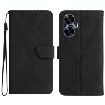 Για Realme C55 ραφή ανάγλυφη δερμάτινη θήκη τηλεφώνου (μαύρο)