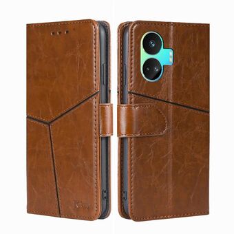 Για Realme C55 ραφή ανάγλυφη δερμάτινη θήκη τηλεφώνου (καφέ)