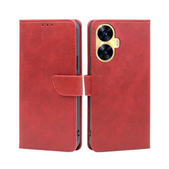 Για το Realme C55 4G Calf Texture Πόρπη Flip δέρμα υπόθεση τηλεφώνου (κόκκινο)