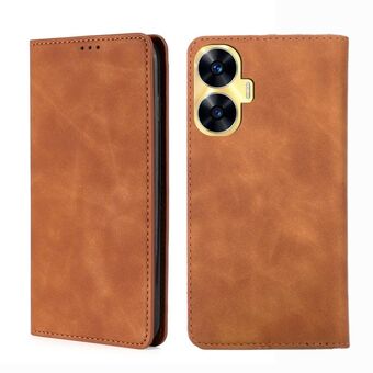 Για Realme C55 4G δέρμα αίσθηση μαγνητική οριζόντια Flip δέρμα τηλέφωνο υπόθεση (ανοιχτό καφέ)