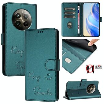 Για Realme 12 Pro / 12 Pro + 5G Παγκόσμια χαμόγελο ανάγλυφο RFID δερμάτινη θήκη τηλεφώνου (πράσινο μέντα)