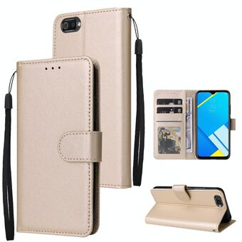 Για Realme C2 Πολυλειτουργική οριζόντια Flip δερμάτινη θήκη με τρεις υποδοχές για κάρτες (χρυσό)