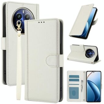 Για Realme 12 + / Narzo 70 Παγκόσμια αίσθηση δέρματος καθαρό χρώμα κάρτα υποδοχές δερμάτινη θήκη τηλεφώνου με διπλό κορδόνι (λευκό)