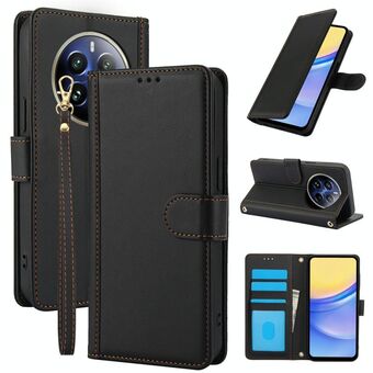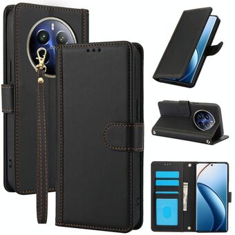 Για Realme 13 Pro 5G Wristband δέρμα πίσω υπόθεση τηλεφώνου (Μαύρο)