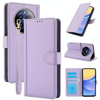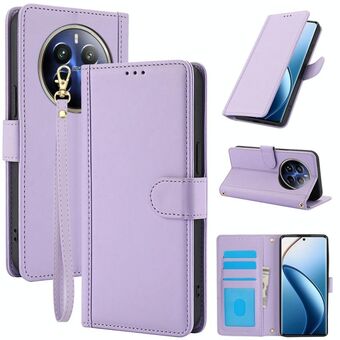 Για Realme 12 + / Narzo 70 Global Skin Feel Pure Color Card Slots δερμάτινη θήκη τηλεφώνου με διπλό κορδόνι (μωβ)