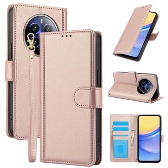 Για Realme 12 + / Narzo 70 Παγκόσμια αίσθηση δέρματος Pure Color Card Slots δερμάτινη θήκη τηλεφώνου με διπλό κορδόνι (Rose Gold)