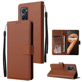Για Realme 9i Πολυλειτουργική οριζόντια Flip δερμάτινη θήκη με τρεις υποδοχές για κάρτες (καφέ)