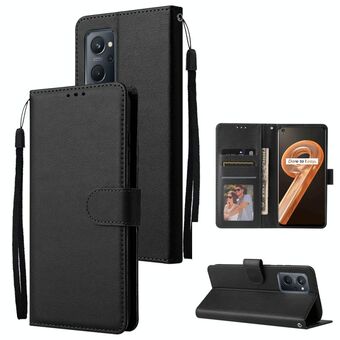 Για Realme 9i Πολυλειτουργική οριζόντια Flip δερμάτινη θήκη με τρεις υποδοχές για κάρτες (μαύρο)