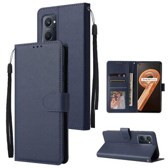 Για Realme 9i Πολυλειτουργική οριζόντια Flip δερμάτινη θήκη με τρεις υποδοχές για κάρτες (Ναυτικό μπλε)