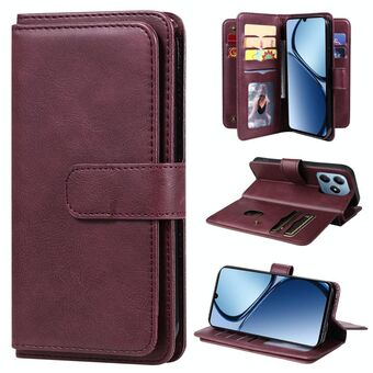 Για Realme C63 / C61 / Note 60 Πορτοφόλι πολλαπλών λειτουργιών 10 υποδοχές για κάρτες Δερμάτινη θήκη τηλεφώνου (Claret)