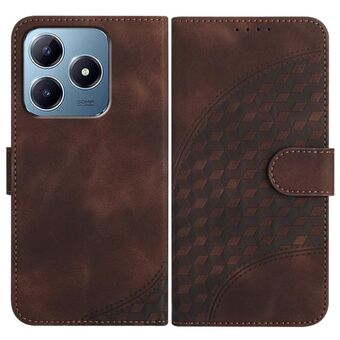 Θήκη δερμάτινη για Realme C63 / C61 Global με ανάγλυφο σχέδιο κεφαλής ελέφαντα και κορδόνι (Καφέ)