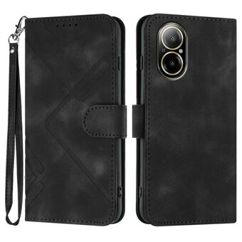 Θήκη τηλεφώνου από δέρμα με υφή και σχέδιο γραμμών για Realme 12 Lite / C67 4G (Καφέ)