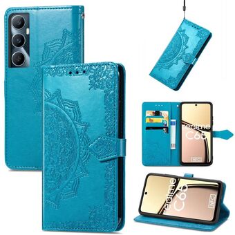 Για Realme C65 Mandala λουλούδι ανάγλυφο δερμάτινη θήκη τηλεφώνου (μπλε)