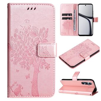 Για Realme C65 4G Tree & Cat ανάγλυφο μοτίβο Flip υπόθεση τηλεφώνου δέρμα (Rose Gold)