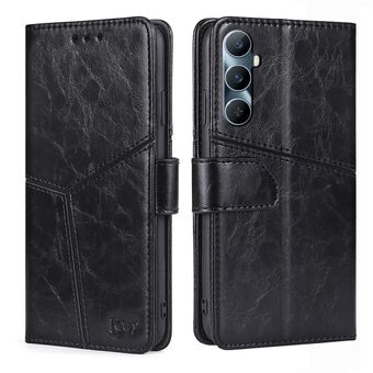 Για Realme C65 4G Γεωμετρική ραφή δερμάτινη θήκη τηλεφώνου (Μαύρο)
