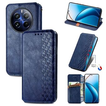 For Realme 12 Cubic Grid Pressed Magnetic Leather Phone Case(Blue)