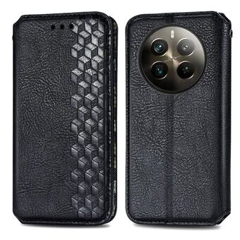 For Realme 12 Pro+ Cubic Grid Pressed Magnetic Leather Phone Case(Black)