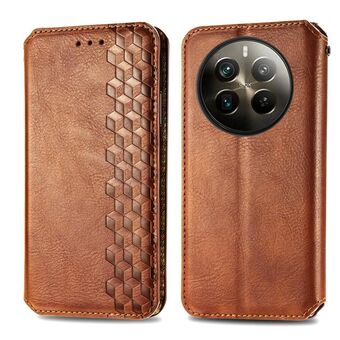 For Realme 12 Pro+ Cubic Grid Pressed Magnetic Leather Phone Case(Brown)
