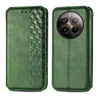 For Realme 12 Pro+ Cubic Grid Pressed Magnetic Leather Phone Case(Green)