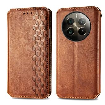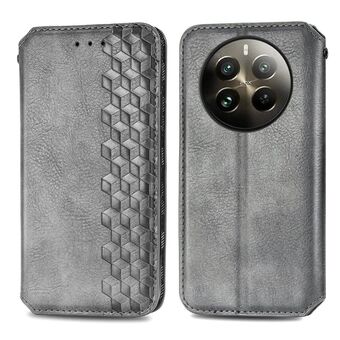 Για Realme 12 Pro+ Cubic Grid Pressed μαγνητική δερμάτινη θήκη τηλεφώνου (πράσινο)