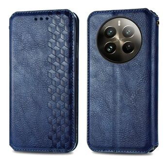 Για Realme 12 Pro+ Cubic Grid Pressed μαγνητική δερμάτινη θήκη τηλεφώνου (μπλε)