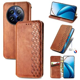 For Realme 12 Pro Cubic Grid Pressed Magnetic Leather Phone Case(Brown)